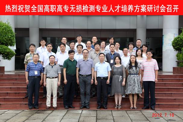 由中国机械工程学会无损检测学分会和全国机械职业教育教学指导委员会主办、深圳职业技术学院承办、深圳无损检测学会协办的全国高职高专无损检测专业人才培养方案研讨会于7月17日到20日在深圳召开。中国无损检测学会副理事长李路明、秘书长徐永昌、教育培训科普工作委员会主任刘晴岩、全国机械职业教育教学指导委员会(行指委)材料工程专指委戴建树、深圳市特种设备安全检验研究院总工程师谢常欢到会指导并发表了热情洋溢的讲话。我校机电工程学院院长冯小军、副院长钟健到会祝贺。来自全国17所高职高专院校、2家用人企业和学生代表共40人参加了会议。研讨会由中国无损检测学会教育培训科普工作委员会副主任、行指委材料工程专指委委员晏荣明副主持。